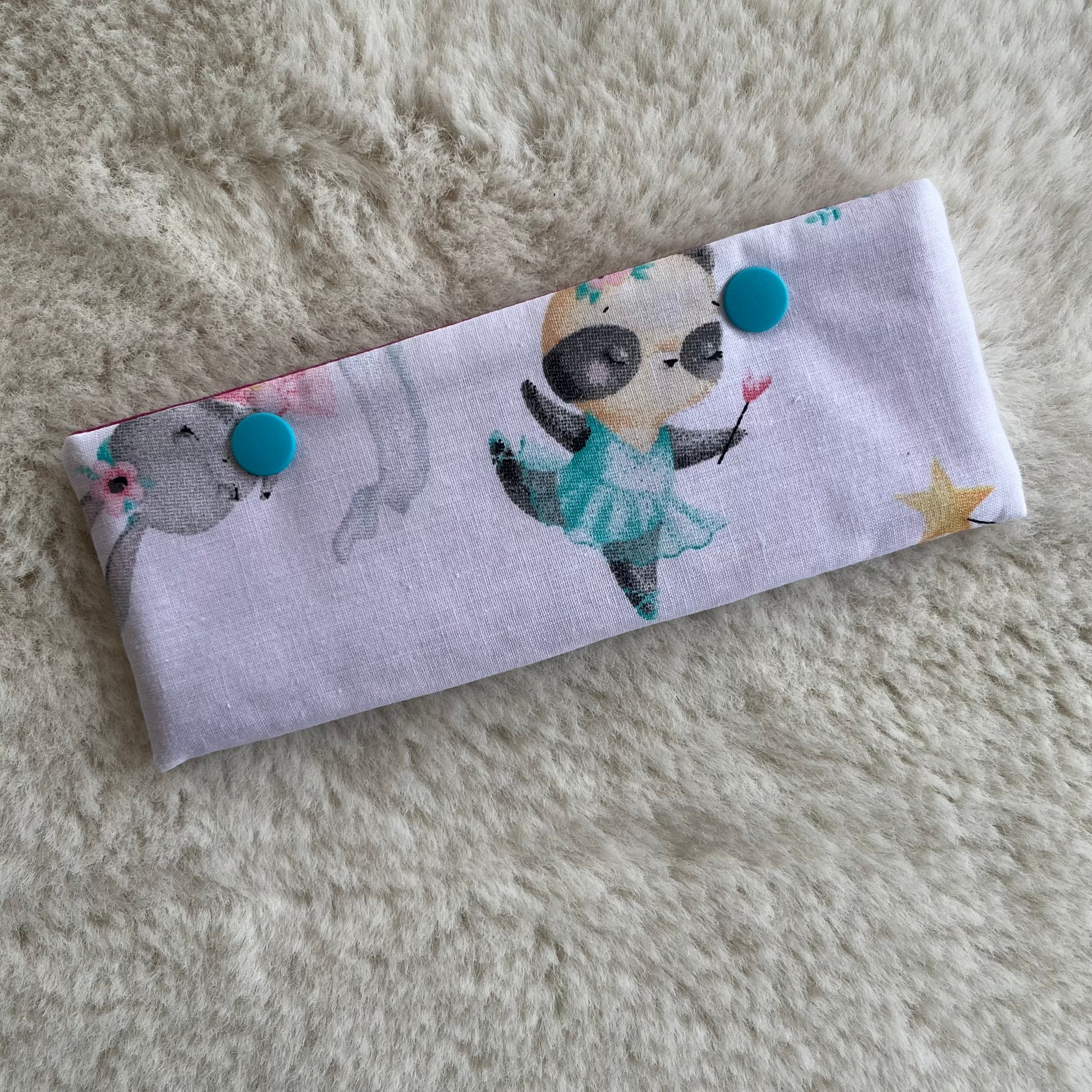 Sie ist aus Baumwolle und Vlieseline und hat zwei Druckknöpfe.